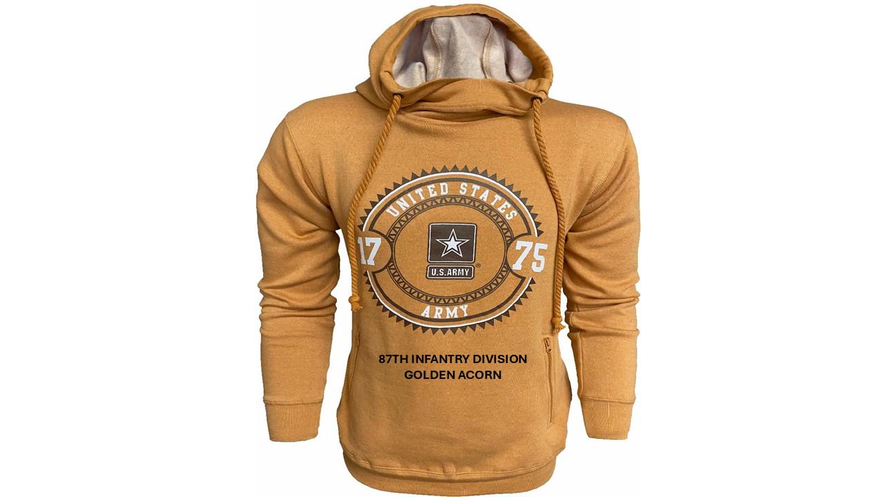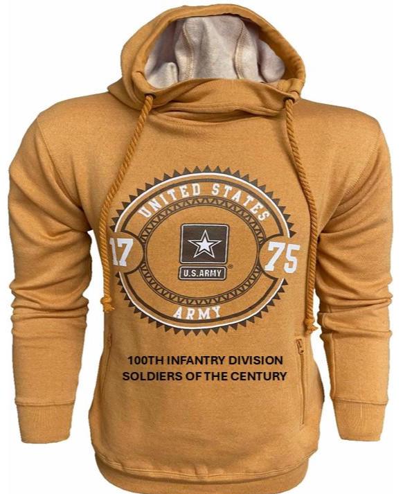 U.S. ARMY VINTAGE PREMIUM CAMEL HOODIE. THE DESIGN IS A COMBINATION OF DIGITAL PRINT & VINYL, EACH HOODIE'S ARMY UNIT IS MADE TO ORDER. ARMY OFFICIALLY LICENSED. THIS HOODIE HAS LIMITED QUANTITY, AND WILL BE DISCONTINUED WHEN INVENTORY RUNS OUT.