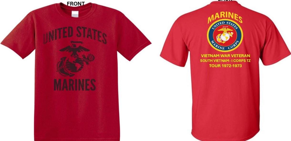 USMC Vietnam War Veteran* Tour 1973-1974*South Vietnam-I Corps TZ . 2-Sided T-Shirt. Marine Corps Officially Licensed.