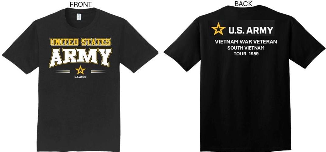 ARMY*Tour 1962* Vietnam War Veteran* South Vietnam. 2-Sided T-Shirt. US ARMY Officially Licensed.