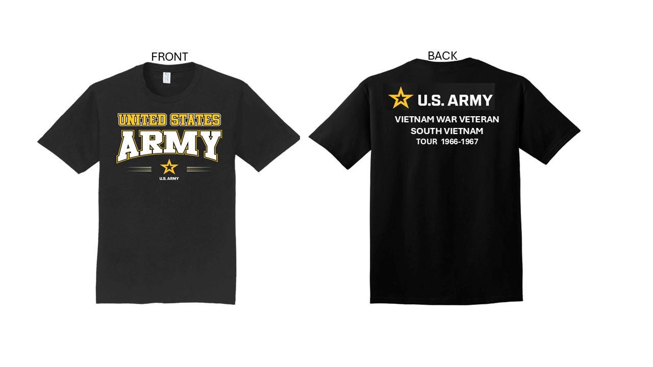ARMY*Tour 1965-1966* Vietnam War Veteran* South Vietnam. 2-Sided T-Shirt. US ARMY Officially Licensed.