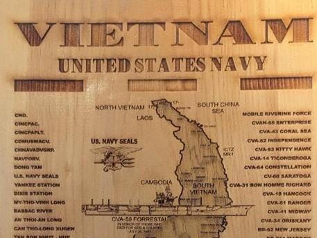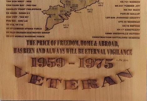 VIETNAM VETERAN NAVY UNITS* PLAQUE WOODEN MOUNT. ENGRAVED HEAT PROCESS. 11X15X1