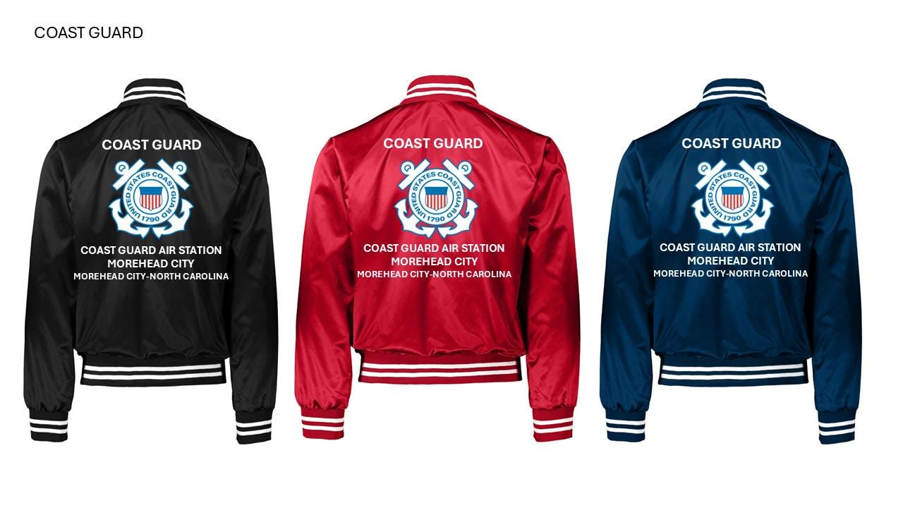 Coast Guard Air Station MIAMI* Opa Locka-Florida * Coast Guard Vinyl Design Satin Jacket (Back Only) USCG Officially Licensed