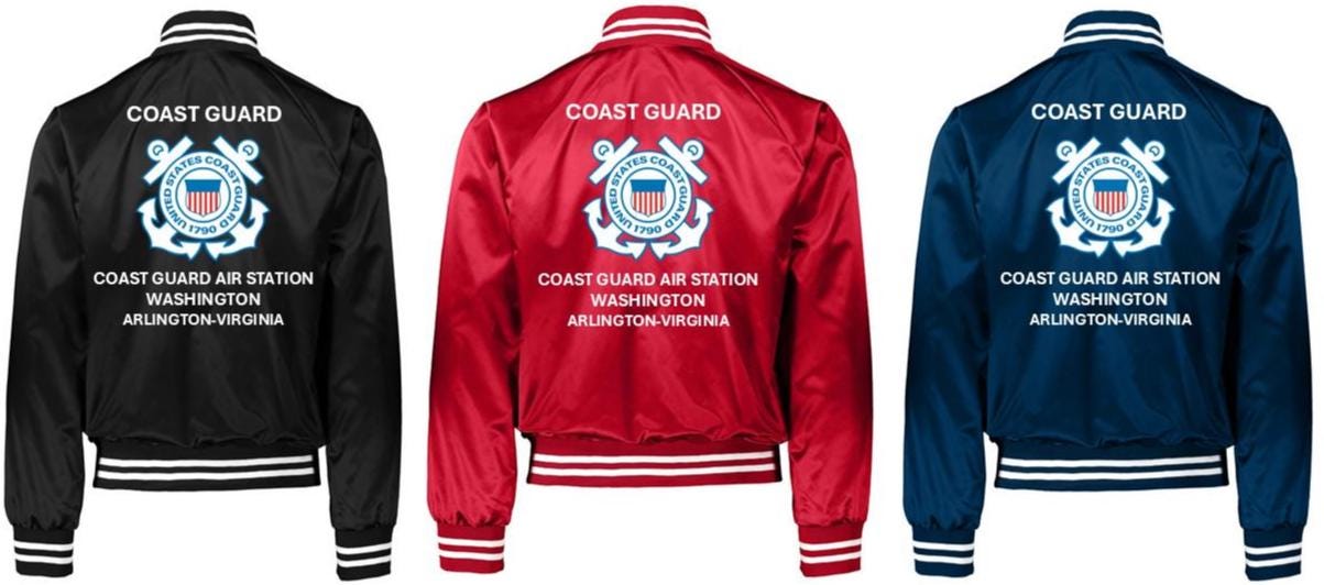 Coast Guard Air Station WASHINGTON* Arlington-Virginia*Coast Guard Vinyl Design Satin Jacket (Back Only) USCG Officially Licensed